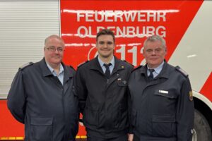 Ortsbrandmeister Mark Genschick, neu gewählter stv. Ortsbrandmeister Corvin Fittje und Stadtbrandmeister Bernhard Möller (v.l.)